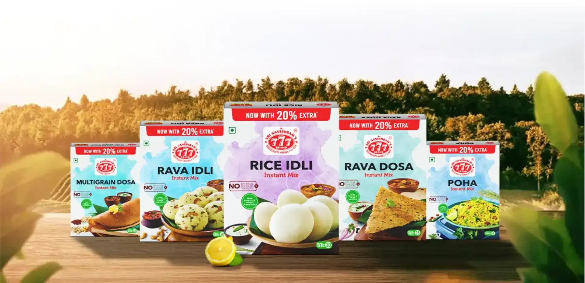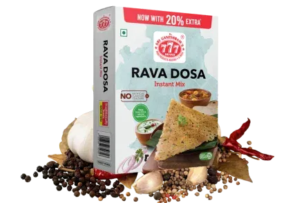 Popular items include rava idli and rava dosa instant mixes, ready in just a few minutes.
