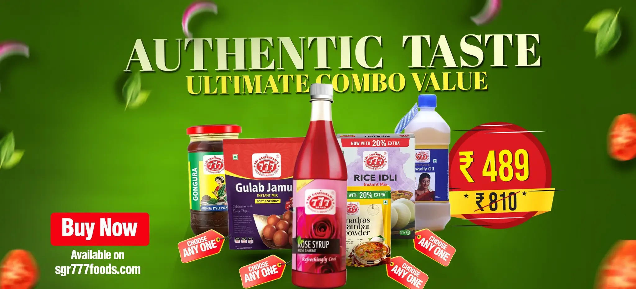 Your search for Indian snacks, Indian sweets, spices, and other Ready to Use Indian Cooking Staples ends here. Browse online, place your order, and enjoy fast delivery—wherever you are in India. With SGR 777 Foods, authentic flavours are always within reach.