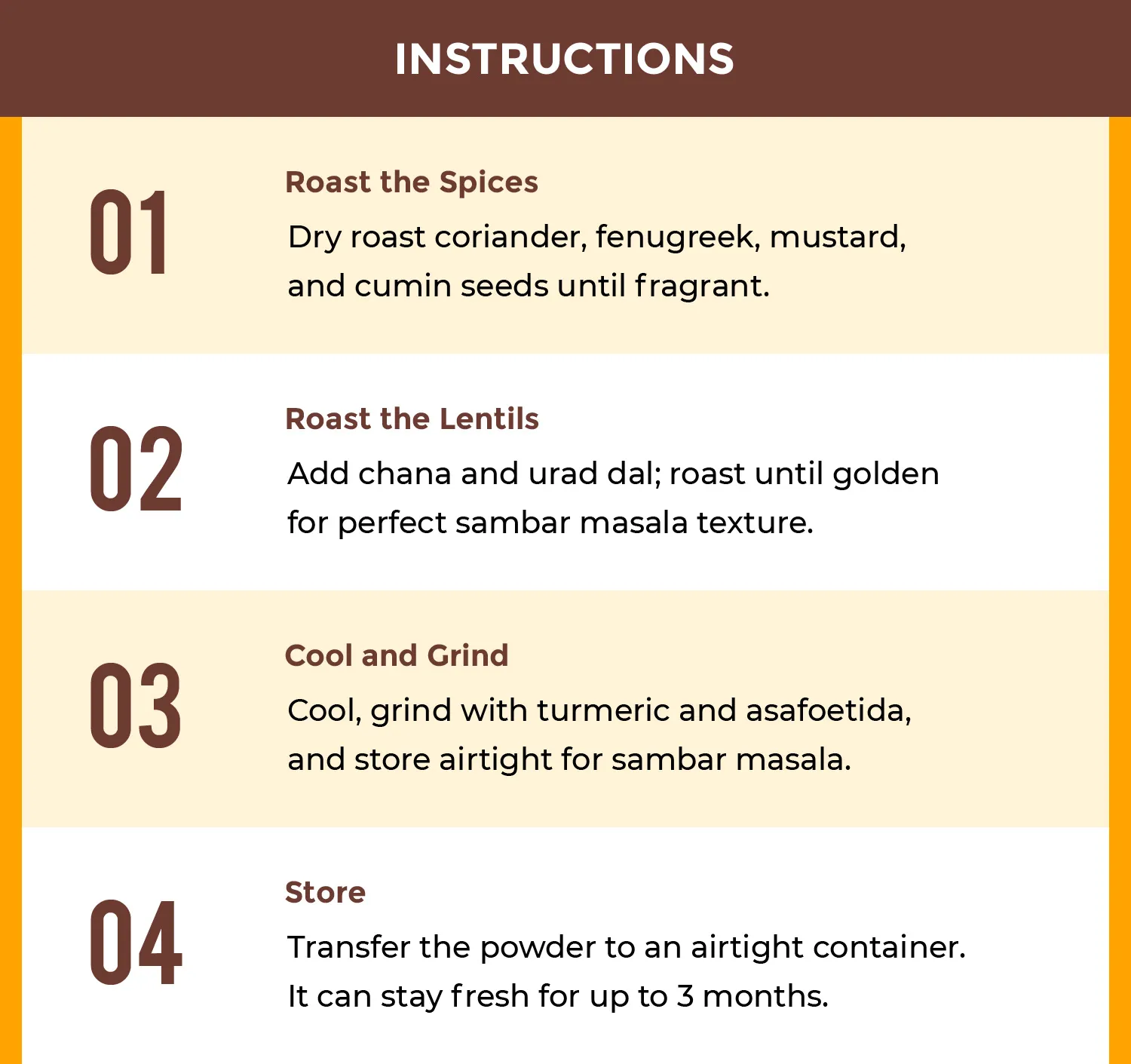 - Fresh ingredients ensure the best results, whether for madras sambar powder or homemade sambar masala.
