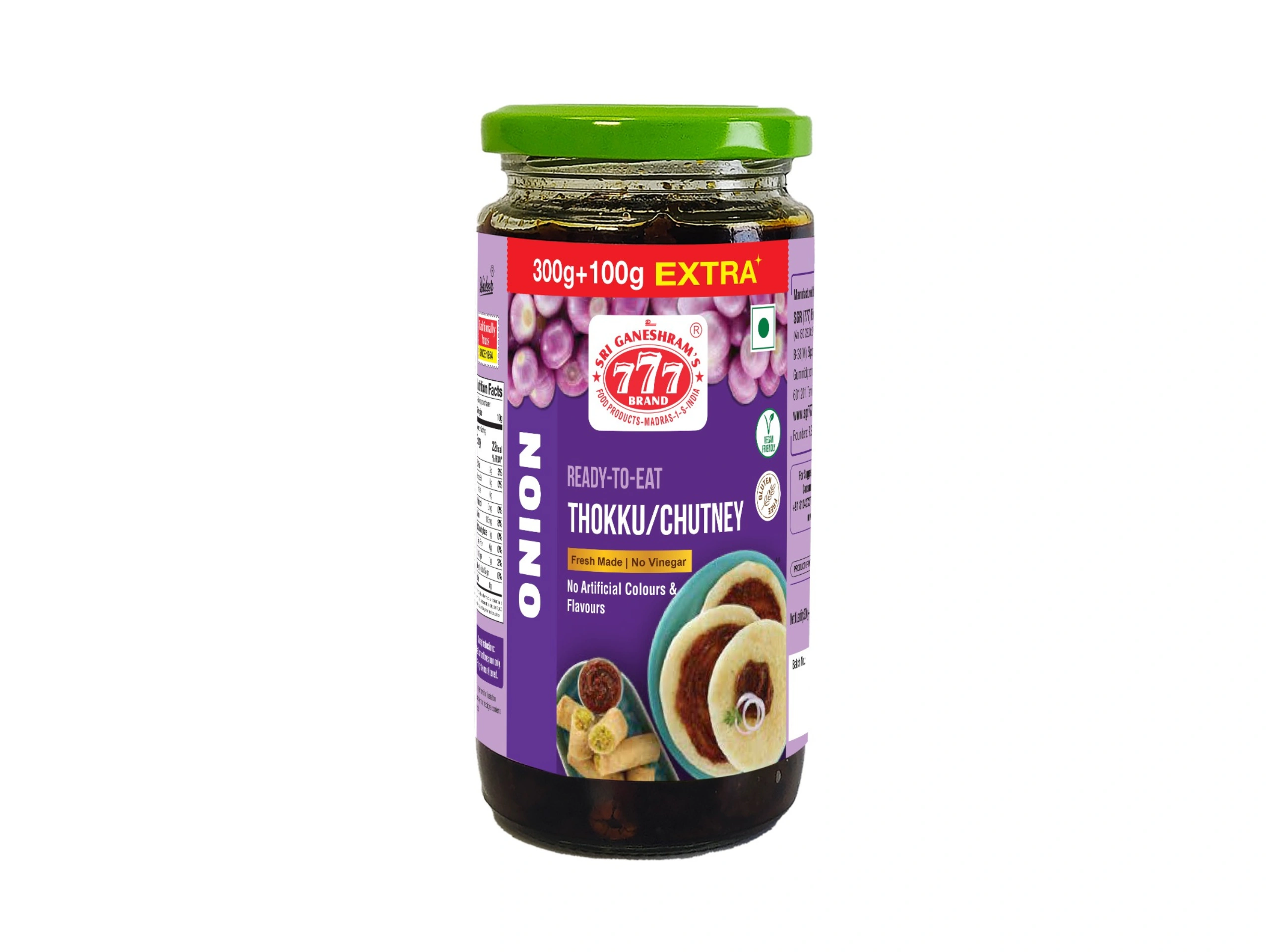Simple onion chutney or the tomato-onion version, 777 onion chutney retains the local taste profiles but provides a ready-to-use, convenient product.
