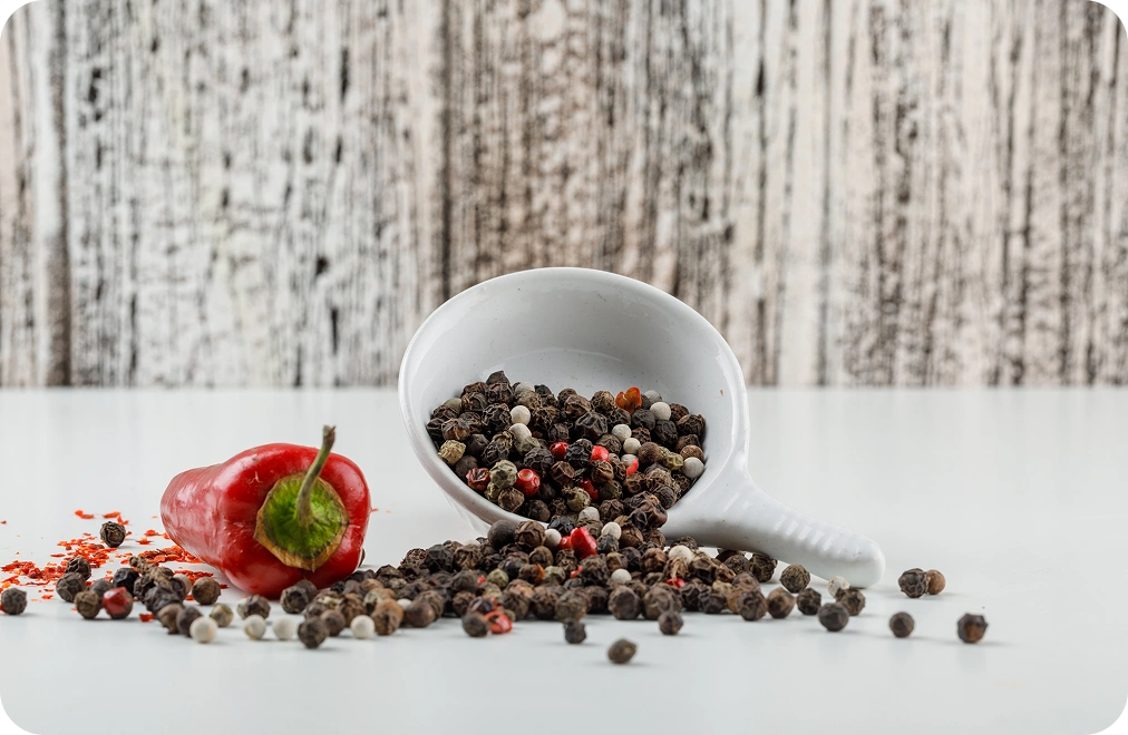 This guide talks about peppercorns. Peppercorns are dried berries from a vine, while chillies and bell peppers belong to the capsicum family. Capsicum gives quick, sharp heat. Peppercorns give a slower warmth and a deep aroma. That is why peppercorns work in both spicy and mild foods.