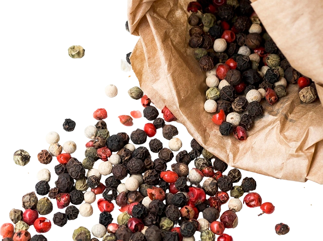 Peppercorns come from the same berry. The colour changes based on when the berry is picked and how it is processed. The classic peppercorns. Types of peppers are black, white, green, and red.